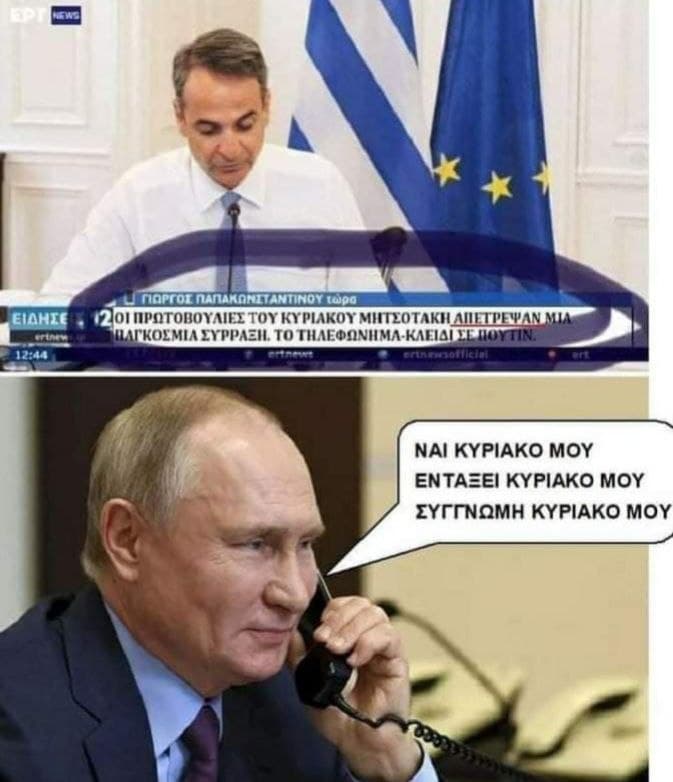 -Μωρ’ συ Βλαδίμηρε, ξέρεις τι λένε εδώ στο Ελλάντα; ΄Οτι σε πήρε τηλέφωνο το ζαβό και έτσι δεν έκανες την Ουκρανία λαμπόγυαλο! Αληθεύει ή μας πουλάνε φούμαρα;