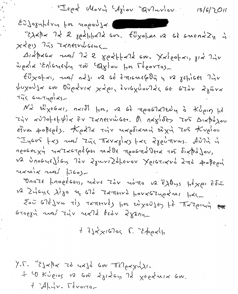 ΔΙΔΑΧΕΣ ‘ ‘Οι παγίδες του διαβόλου είναι φοβερές” – Γράμμα Γέροντα Εφραίμ της Αριζόνα σε Πνευματικό του Παιδί (2 απο 5) – 13/6/2011 Last updated: 24 Μαρτίου 2022 20:02 By mike 165 Views Share 0 Min Read SHARE add TAGGED:slide Share This Article Facebook Copy Link Previous Article ΑΓΙΟΣ ΠΑΪΣΙΟΣ: «ΤΟ ΓΚΡΕΜΙΣΜΑ ΤΟΥ ΤΕΜΕΝΟΥΣ ΤΟΥ ΟΜΑΡ ΣΤΑ ΙΕΡΟΣΟΛΥΜΑ ΘΑ ΕΙΝΑΙ ΣΗΜΕΙΟ ΟΤΙ ΠΛΗΣΙΑΖΕΙ Η ΕΚΠΛΗΡΩΣΗ ΤΩΝ ΠΡΟΦΗΤΕΙΩΝ» Next Article «ΧΑΙΡΕ ΚΑΤΑΡΑΣ ΛΥΤΡΩΣΙΣ ΤΟΥ ΑΔΑΜ ΘΕΟΤΟΚΕ»! Δεν υπάρχουν Σχόλια Αφήστε μια απάντηση Ακύρωση απάντησηςΓια να σχολιάσετε πρέπει να συνδεθείτε. FacebookLike Διαβάζονται Τώρα «Γιώργο αν γίνει πόλεμος που θα παρουσιασθείς;» Δασκάλα ἀπέρριψε ζωγραφιὰν μαθητρίας, λόγῳ «χριστιανοφοβίας»! Μικρή Άννι: Ο Χριστός μου είπε… Η Μαργιώ τύλιξε το παιδί σε μια κουβέρτα και κίνησε για το ξωκλήσι της Παναγιάς Κύπρος: Απο-ιεροποίηση και του Ιερού Βήματος. Το Ιερό Βήμα έγινε δημόσιο βήμα και βγάζουν λόγο οι πολιτικοί.. Η εκκλησία γεμάτη με γιγαντο-οθόνες Σκηνικό Matrix! Εκκοσμίκευση.. Σοκ στο Βέλγιο: Βρεφονηπιοκόμος βίαζε μαζί με τον σύντροφό της παιδάκια – Κατέγραφαν τις αποτρόπαιες πράξεις τους Το γαλλικό M6 συγκρίνει τον Χριστιανικό Σταυρό με σύμβολα των Ναζί – «Πνευματική βεβήλωση» και διεθνής κατακραυγή