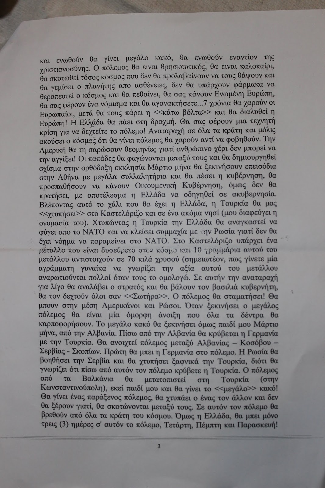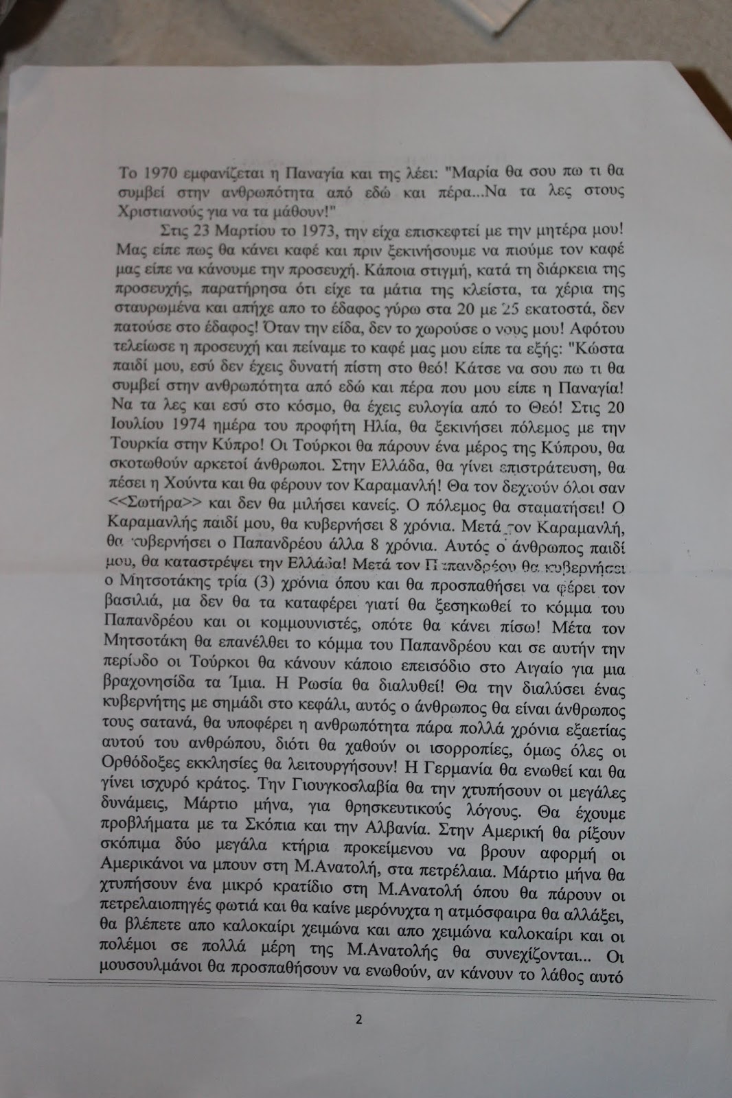 ΣΧΟΛΙΟ : Η ιστορία των γεγονότων όπως την έζησα από την αρχή μετά τα γεγονότα του Πολυτεχνείου και την πτώση της Χούντας,τον ερχομό του Καραμανλή και τη Κυβέρνηση Παπανδρέου μέχρι την κατάληψη της Κωνσταντινούπολης από τον Ελληνικό στρατό,σε κάποια σημεία υπάρχουν και ενδεικτικές ημερομηνίες, που έχω ακούσει και από Γέροντα, σε αναμονή των επερχόμενων γεγονότων.