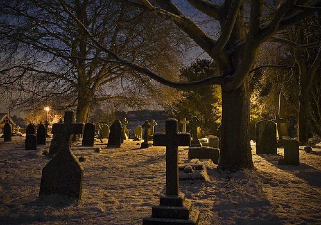 Βράδυ , μεσάνυχτα , χιονίζει και ένας τυπάκος αναγκάζεται να περάσει μέσα από ένα νεκροταφείο για να κόβει δρόμο , αν και τρέμει από το φόβο του .