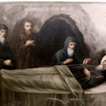 Τήν ἑπομένη, ἡμέρα τοῦ Ἁγίου Ἀνδρονίκου, στίς 9 Ὀκτωβρίου, τόν μετέφεραν στή μονή τῆς Παναγίας τῆς Αὐγασίδας, κατόπιν ἔντονων παρεναίσεών του. «Δέ θά φύγω παιδιά μου, θά μείνω ἐδῶ», εἶπε στούς δικούς του.1 Φορτώνοντάς τον στά χέρια τους ὁ γιός του Ἀντωνής καί ἡ Σαλώμη, τόν πέρασαν ἀπό ὅλες τίς εἰκόνες γιά νά προσκυνήσει. Μόλις προσκύνησε καί τήν τελευταία εἰκόνα ἔγινε κατάμαυρος. Φοβήθηκαν τότε οἱ γυναῖκες πώς πέθανε καί ἡ κόρη τοῦ παπποῦ ἡ Χαρίκλεια ἔκλεγε. «Μή φοβάστε καί δέν πέθανε», τούς λέει ὁ Ἀντωνής.