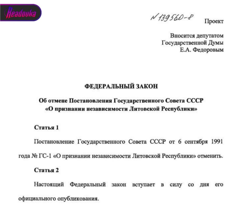 Υποβλήθηκε στην Κρατική Δούμα (ρωσική Βουλή) σχέδιο νόμου για την καταγγελία της αναγνώρισης της ανεξαρτησίας της Λιθουανίας από τη Ρωσία!