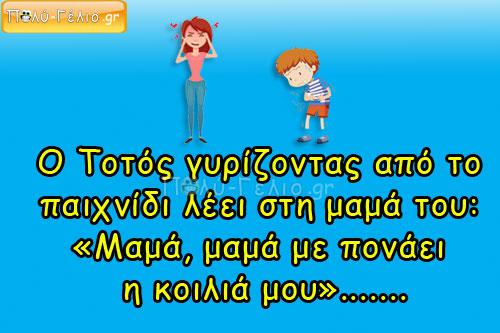 Ο Τοτός γυρίζοντας από το παιχνίδι λέει στη μαμά του: «Μαμά, μαμά….