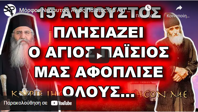 ΔΙΔΑΧΕΣ Μόρφου Νεόφυτος: Άγιος Παΐσιος: 15 ΑΥΓΟΥΣΤΟΣ ΕΡΧΕΤΑΙ, Ο ΑΓΙΟΣ ΠΑΪΣΙΟΣ ΜΑΣ ΑΦΟΠΛΙΣΕ ΟΛΟΥΣ Last updated: 7 Αυγούστου 2022 09:07 By mike 2246 Views Share 0 Min Read SHARE Μόρφου Νεόφυτος: Άγιος Παΐσιος: 15 ΑΥΓΟΥΣΤΟΣ ΕΡΧΕΤΑΙ, Ο ΑΓΙΟΣ ΠΑΪΣΙΟΣ ΜΑΣ ΑΦΟΠΛΙΣΕ ΟΛΟΥΣ add TAGGED:slide Share This Article Facebook Copy Link Previous Article Γέρων Γεώργιος: “ΠΑΙΖΟΥΜΕ ΜΕ ΤΗ ΦΩΤΙΑ…” Next Article Ταμείο ανάκαμψης Ευρώ “γιοκ”…πολιτειακή ανωμαλία Δεν υπάρχουν Σχόλια Αφήστε μια απάντηση Ακύρωση απάντησηςΓια να σχολιάσετε πρέπει να συνδεθείτε. FacebookLike Διαβάζονται Τώρα Θα έρθει μια κυβέρνηση που θα επιβάλει το σφράγισμα με την βία – Αρχιμ. Σάββας Αχιλλέως Ο Κήπος Έκτακτης Ανάγκης: Οι Μόνες 7 Καλλιέργειες που Χρειάζεστε Όταν Στερέψουν οι Βρύσες Θα ΠΕΤΑΞΕΙΣ τα ΦΑΡΜΑΚΑ Το μεγάλο ΜΥΣΤΙΚΟ ΥΓΕΙΑΣ του Αγίου Πορφυρίου New York Post: Εγκαταλείπουν μαζικά τις εκκλησίες μας, για την Ορθοδοξία Ἡ «οὐράνια βροχὴ» πάνω ἀπὸ τὸ Ἱερὸ Βῆμα καὶ τὸ ἄνοιγμα τῶν ματιῶν τοῦ Ἐσταυρωμένου Χριστοῦ! Διονύσης Μακρής: Στα όπλα στα όπλα, έρχεται… σεισμός! Χωρίς Σταυρό η εκκλησία του Αγ. Γεωργίου-Ροτόντα. Η απάντηση της Μενδώνη προκαλεί! Δελτίο Τύπου, Βίντεο, Σχόλια Το συγκλονιστικό θαύμα του Αγίου Εφραίμ: Η απίστευτη ιστορία ενός πρώην ναρκομανή Ο σταυρωτής μιλά για ανάσταση! Η ΠΡΟΣΠΑΘΕΙΑ ΝΟΜΙΜΟΠΟΙΗΣΗΣ ΤΩΝ ΨΕΥΔΟΕΠΙΣΤΗΜΩΝ ΜΕΣΑ ΑΠΟ ΤΟ ΛΕΞΙΛΟΓΙΟ ΤΗΣ ΚΒΑΝΤΙΚΗΣ ΦΥΣΙΚΗΣ