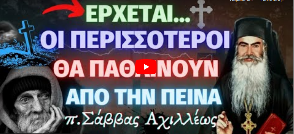 ΠΡΟΦΗΤΕΙΕΣ ΕΠΕΊΓΟΝ!! – Έρχεται – Οι περισσότεροι θα παθαίνουν από την πείνα – π. Σάββας Αχιλλέως ✞ Last updated: 19 Αυγούστου 2022 11:12 By mike 1524 Views Share 0 Min Read SHARE ΕΠΕΊΓΟΝ!! – Έρχεται – Οι περισσότεροι θα παθαίνουν από την πείνα – π. Σάββας Αχιλλέως ✞ add TAGGED:slide Share This Article Facebook Copy Link Previous Article ΑΓΡΙΟ ΥΠΕΤΡΟΛΑΡΙΣΜΑ Κινέζου διπλωμάτη στις ΗΠΑ: Όλοι ξέρουμε τι έγινε στις 11. Σεπτέμβρη στους Δίδυμους Πύργους, pic Next Article Παναγιώτης Σημάτης : Γέρων Γαβριὴλ καὶ «δίπορτο» ἀποτειχίσεως Δεν υπάρχουν Σχόλια Αφήστε μια απάντηση Ακύρωση απάντησηςΓια να σχολιάσετε πρέπει να συνδεθείτε. FacebookLike Διαβάζονται Τώρα «Γιώργο αν γίνει πόλεμος που θα παρουσιασθείς;» Μικρή Άννι: Ο Χριστός μου είπε… Δασκάλα ἀπέρριψε ζωγραφιὰν μαθητρίας, λόγῳ «χριστιανοφοβίας»! Η Μαργιώ τύλιξε το παιδί σε μια κουβέρτα και κίνησε για το ξωκλήσι της Παναγιάς Κύπρος: Απο-ιεροποίηση και του Ιερού Βήματος. Το Ιερό Βήμα έγινε δημόσιο βήμα και βγάζουν λόγο οι πολιτικοί.. Η εκκλησία γεμάτη με γιγαντο-οθόνες Σκηνικό Matrix! Εκκοσμίκευση.. Σοκ στο Βέλγιο: Βρεφονηπιοκόμος βίαζε μαζί με τον σύντροφό της παιδάκια – Κατέγραφαν τις αποτρόπαιες πράξεις τους Όταν η επιστήμη υποκλίνεται στο Ευαγγέλιο: Ψηφιακή σάρωση «ανέστησε» αρχαίες Επιστολές του Παύλου και δεν έχει αλλάξει «ούτε ένα γιώτα»! Γέρων Δαμιανός Αγιορείτης. ΜΑΣ ΜΙΛΑ ΓΙΑ ΤΟΥΣ ΙΕΧΩΒΑΔΕΣ ΚΑΙ ΤΟ ΦΟΒΕΡΟ ΟΡΑΜΑ ΠΟΥ ΕΙΔΕ Το γαλλικό M6 συγκρίνει τον Χριστιανικό Σταυρό με σύμβολα των Ναζί – «Πνευματική βεβήλωση» και διεθνής κατακραυγή Καλοστημένο σκηνικό λάσπης εις βάρος του Μητροπολίτη Πάφου Τυχικού.