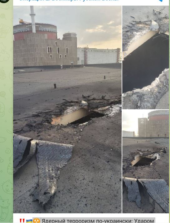 Η πρόσκρουση ήταν μόλις στα 430 πόδια από τον πυρηνικό αντιδραστήρα Νο. 2 του πυρηνικού σταθμού Zaporizhzhia! Απέτυχαν να πλήξουν τα πυρηνικά και με drone. Oι επιθέσεις έγινα στις 26 και 27 Αυγούστου αναφέρουν διπλωματικές αρχές Ρωσίας.