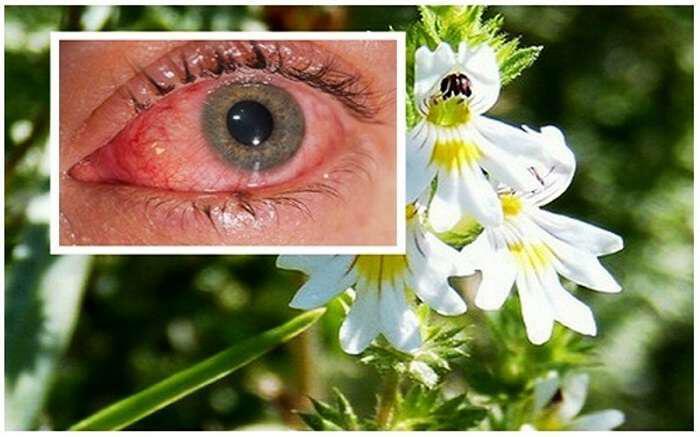 Πρώτα απ’ όλα, αναμίξτε 2 dl βραστό νερό και μισό κουταλάκι του γλυκού ξηρό βότανο ευφρασίας. Αφήστε το να μείνει για 3-5 λεπτά. Σουρώστε και χρησιμοποιήστε αυτό το ρόφημα για να ξεπλύνετε τα μάτια σας 2-3 φορές την ημέρα.