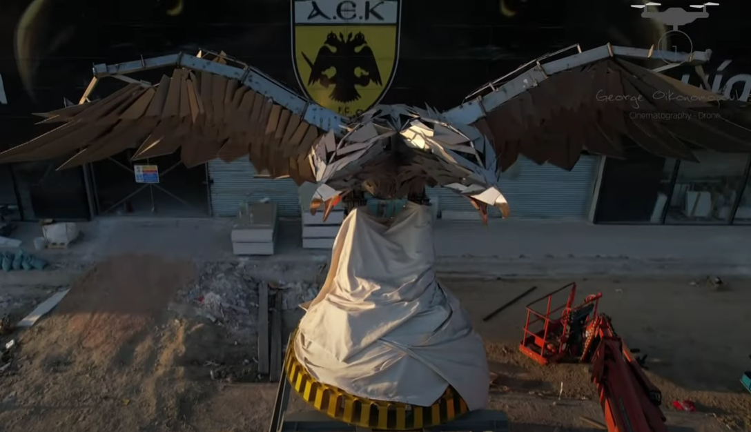 Λίγες μόλις ώρες πριν τα επίσημα εγκαίνια του νέου γηπέδου της ΑΕΚ, κάποιοι καλλιτέχνες της χώρας μας, αγανάκτησαν με τον εντυπωσιακό δικέφαλο αετό που στέκεται στην είσοδο του.
