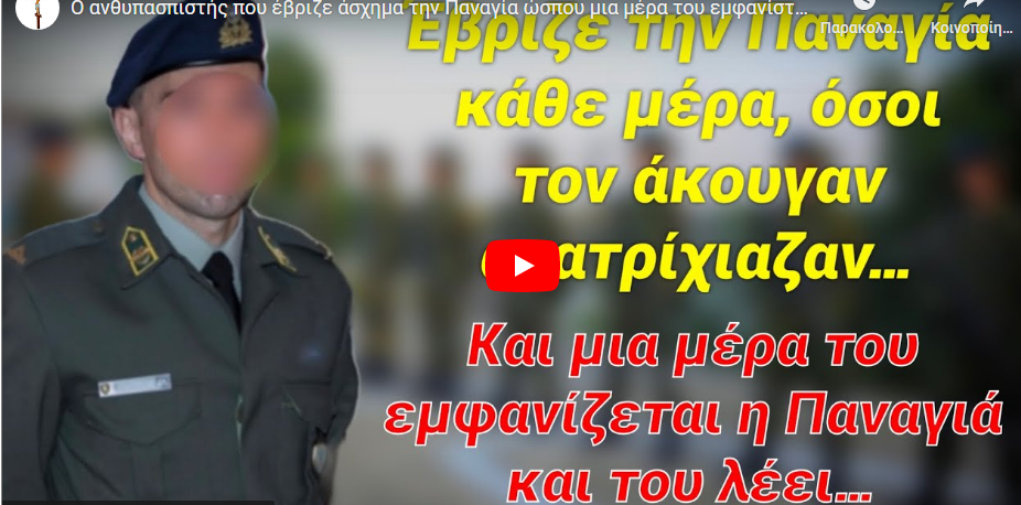 ΘΑΥΜΑΤΑ Ο ανθυπασπιστής που έβριζε άσχημα την Παναγία ώσπου μια μέρα του εμφανίστηκε και δείτε τι έπαθε… Last updated: 24 Νοεμβρίου 2022 12:38 By mike 523 Views Share 0 Min Read SHARE Ο ανθυπασπιστής που έβριζε άσχημα την Παναγία ώσπου μια μέρα του εμφανίστηκε και δείτε τι έπαθε… add TAGGED:slide Share This Article Facebook Copy Link Previous Article Yannis Bakman : Πώς να καταστρέψεις μια κοινωνία. Next Article ΑΓΙΟΣ ΚΛΗΜΗΣ ΡΩΜΗΣ: Ο ΜΕΓΑΛΟΣ ΑΠΟΣΤΟΛΙΚΟΣ ΠΑΤΕΡΑΣ Δεν υπάρχουν Σχόλια Αφήστε μια απάντηση Ακύρωση απάντησηςΓια να σχολιάσετε πρέπει να συνδεθείτε. FacebookLike Διαβάζονται Τώρα Θα έρθει μια κυβέρνηση που θα επιβάλει το σφράγισμα με την βία – Αρχιμ. Σάββας Αχιλλέως Τότε ο Μιχαήλ (Αρχάγγελος) που θα είναι δίπλα στον Βασιλιά Ιωάννη, θα του πει.. Ο Κήπος Έκτακτης Ανάγκης: Οι Μόνες 7 Καλλιέργειες που Χρειάζεστε Όταν Στερέψουν οι Βρύσες New York Post: Εγκαταλείπουν μαζικά τις εκκλησίες μας, για την Ορθοδοξία Θα ΠΕΤΑΞΕΙΣ τα ΦΑΡΜΑΚΑ Το μεγάλο ΜΥΣΤΙΚΟ ΥΓΕΙΑΣ του Αγίου Πορφυρίου Ἡ «οὐράνια βροχὴ» πάνω ἀπὸ τὸ Ἱερὸ Βῆμα καὶ τὸ ἄνοιγμα τῶν ματιῶν τοῦ Ἐσταυρωμένου Χριστοῦ! Ο σταυρωτής μιλά για ανάσταση! Η ΠΡΟΣΠΑΘΕΙΑ ΝΟΜΙΜΟΠΟΙΗΣΗΣ ΤΩΝ ΨΕΥΔΟΕΠΙΣΤΗΜΩΝ ΜΕΣΑ ΑΠΟ ΤΟ ΛΕΞΙΛΟΓΙΟ ΤΗΣ ΚΒΑΝΤΙΚΗΣ ΦΥΣΙΚΗΣ Ο Άγιος Σωφρόνιος του Έσσεξ και το Βρετανικό κοινοβούλιο Παρεάκι Καθηγητών στο Τμήμα Θεολογίας ΑΠΘ;