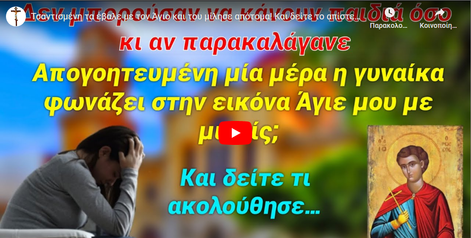 Η ΟΡΘΟΔΟΞΙΑ ΣΤΟ ΚΟΣΜΟ Τσαντισμένη τα έβαλε με τον Άγιο και του μίλησε απότομα! Και δείτε το απίστευτο που ακολούθησε… Last updated: 3 Δεκεμβρίου 2022 20:37 By mike 1414 Views Share 0 Min Read SHARE Τσαντισμένη τα έβαλε με τον Άγιο και του μίλησε απότομα! Και δείτε το απίστευτο που ακολούθησε… add TAGGED:slide Share This Article Facebook Copy Link Previous Article Πώς μας πολεμούν τα πονηρά πνεύματα; Next Article Το χάραγμα του Αντιχρίστου και ο τρόπος που θα προσπαθήσει να το πετύχει…! Πατήρ Σάββας Αχιλλέως Δεν υπάρχουν Σχόλια Αφήστε μια απάντηση Ακύρωση απάντησηςΓια να σχολιάσετε πρέπει να συνδεθείτε. FacebookLike Διαβάζονται Τώρα «Γιώργο αν γίνει πόλεμος που θα παρουσιασθείς;» Μικρή Άννι: Ο Χριστός μου είπε… Δασκάλα ἀπέρριψε ζωγραφιὰν μαθητρίας, λόγῳ «χριστιανοφοβίας»! Η Μαργιώ τύλιξε το παιδί σε μια κουβέρτα και κίνησε για το ξωκλήσι της Παναγιάς Κύπρος: Απο-ιεροποίηση και του Ιερού Βήματος. Το Ιερό Βήμα έγινε δημόσιο βήμα και βγάζουν λόγο οι πολιτικοί.. Η εκκλησία γεμάτη με γιγαντο-οθόνες Σκηνικό Matrix! Εκκοσμίκευση.. Σοκ στο Βέλγιο: Βρεφονηπιοκόμος βίαζε μαζί με τον σύντροφό της παιδάκια – Κατέγραφαν τις αποτρόπαιες πράξεις τους Το γαλλικό M6 συγκρίνει τον Χριστιανικό Σταυρό με σύμβολα των Ναζί – «Πνευματική βεβήλωση» και διεθνής κατακραυγή Όταν η επιστήμη υποκλίνεται στο Ευαγγέλιο: Ψηφιακή σάρωση «ανέστησε» αρχαίες Επιστολές του Παύλου και δεν έχει αλλάξει «ούτε ένα γιώτα»! Γέρων Δαμιανός Αγιορείτης. ΜΑΣ ΜΙΛΑ ΓΙΑ ΤΟΥΣ ΙΕΧΩΒΑΔΕΣ ΚΑΙ ΤΟ ΦΟΒΕΡΟ ΟΡΑΜΑ ΠΟΥ ΕΙΔΕ ΠΡΟΦΗΤΕΙΕΣ ΤΟΥ ΜΙΚΡΟΥ ΡΩΣΟΥ ΑΓΓΕΛΟΥ ΟΤΡΟΚ ΒΙΑΤΣΕΣΛΑΒ (ΣΛΑΒΟΤΣΚΑ)