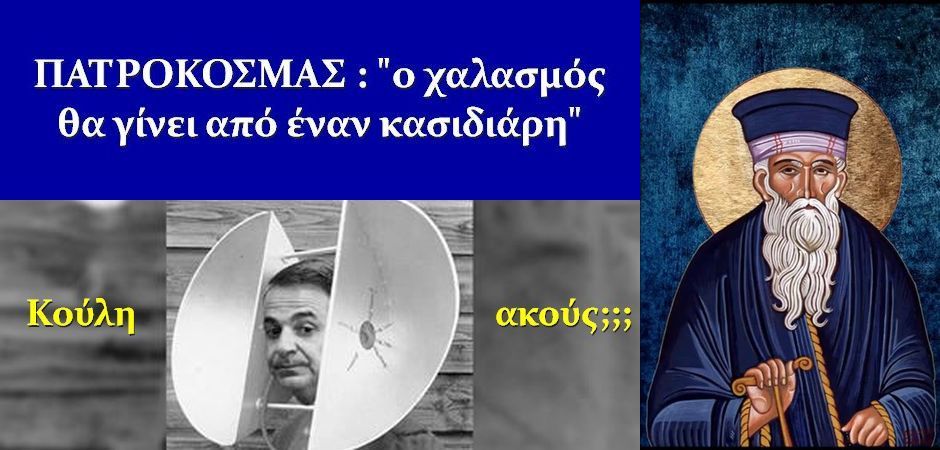 Για να μην παρεξηγηθώ, μένω στην φράση του Πατροκοσμά «Ο ΧΑΛΑΣΜΟΣ ΘΑ ΓΙΝΕΙ ΑΠΟ ΕΝΑΝ ΚΑΣΙΔΙΑΡΗ» και μένω στον ήδη υπάρχοντα χαλασμό, μη εννοώντας σωτηρία ή λύτρωση. Αλήθεια, είχατε ακούσει οι περισσότεροι το επώνυμο Κασιδιάρης πριν τον Ηλία Κασιδιάρη; Γιατί να μίλησε ο Πατροκοσμάς για κάποιον “κασιδιάρη” (με μικρό κάπα) κι όχι για έναν κυριολεκτικά Κασιδιάρη; Αχ, Πατροκοσμά μου, πόσο ωραία τα είπες 2,5 αιώνες πριν. Μεγάλε εθνομάρτυρα Άγιε Κοσμά Αιτωλέ, πρέσβευε υπέρ ημών!