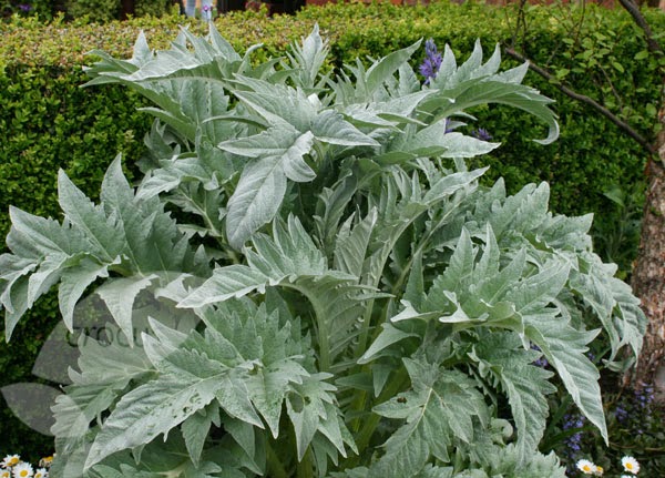Τα φύλλα της είναι μεγάλα με βαθιές σχισμές, χρώμα γκριζωπό στο κάτω μέρος και το στέλεχος της είναι μακρύ με διακλαδώσεις. Πολλαπλασιάζεται με παραφυάδες κατά την άνοιξη ή το φθινόπωρο ενώ ο βλαστός της ξεραίνεται το καλοκαίρι.