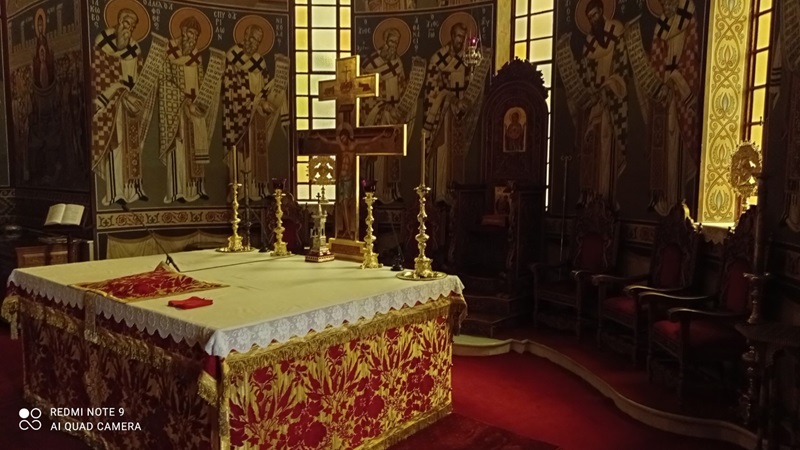 Αρα αφού πίσω από την Αγία Τράπεζα είναι το σύνθρονον του Επισκόπου ,εκεί ακριβώς πρέπει να στέκει και ο Σταυρός !