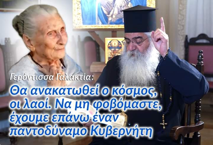 Αυτή είναι μια σύγχρονη Αγία (δείχνει το βιβλίο: “Η Οσία Γερόντισσα Γαλακτία της Κρήτης”, Ιερά Μητρόπολις Μόρφου, εκδ. Θεομόρφου). Εκοιμήθηκε πριν 3-4 χρόνια στην Κρήτη η Γερόντισσα Γαλακτία, την εγνώρισα προσωπικά. Κάποτε σε μια συνομιλία μας η οποία έγινε 1η Απριλίου 2016, τηλεφωνική συνομιλία, την ερώτησα στο τηλέφωνο: