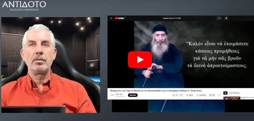 ΠΡΟΦΗΤΕΙΕΣ Τι λένε οι προφητείες γι΄αυτά που έρχονται Last updated: 4 Μαρτίου 2024 12:05 By mike 694 Views Share 0 Min Read SHARE Παρουσίαση κάποιων προφητειών που περιγράφουν τα γεγονότα που θα ζήσουμε πολύ σύντομα add TAGGED:slide Share This Article Facebook Copy Link Previous Article Η θεωρία της Ηθικής Σχετικότητας Next Article To προορατικό χάρισμα του του Οσίου Εφραίμ Κατουνακιώτη Δεν υπάρχουν Σχόλια Αφήστε μια απάντηση Ακύρωση απάντησηςΓια να σχολιάσετε πρέπει να συνδεθείτε. FacebookLike Διαβάζονται Τώρα «Γιώργο αν γίνει πόλεμος που θα παρουσιασθείς;» Μικρή Άννι: Ο Χριστός μου είπε… Δασκάλα ἀπέρριψε ζωγραφιὰν μαθητρίας, λόγῳ «χριστιανοφοβίας»! Η Μαργιώ τύλιξε το παιδί σε μια κουβέρτα και κίνησε για το ξωκλήσι της Παναγιάς Κύπρος: Απο-ιεροποίηση και του Ιερού Βήματος. Το Ιερό Βήμα έγινε δημόσιο βήμα και βγάζουν λόγο οι πολιτικοί.. Η εκκλησία γεμάτη με γιγαντο-οθόνες Σκηνικό Matrix! Εκκοσμίκευση.. Σοκ στο Βέλγιο: Βρεφονηπιοκόμος βίαζε μαζί με τον σύντροφό της παιδάκια – Κατέγραφαν τις αποτρόπαιες πράξεις τους Το γαλλικό M6 συγκρίνει τον Χριστιανικό Σταυρό με σύμβολα των Ναζί – «Πνευματική βεβήλωση» και διεθνής κατακραυγή
