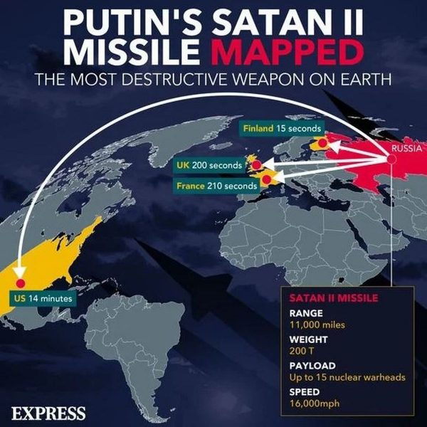 Φανταστείτε για παράδειγμα ο πύραυλος αυτός να εκτοξευτεί από τη Ρωσία. Μέσα σε 3 λεπτά έχει τη δυνατότητα να βρεθεί επάνω από την Βρετανία, ή τη Γαλλία. Από μεγάλο ύψος, σχεδόν έξω από την ατμόσφαιρα μπορεί να ρίξει 15 πυρηνικές κεφαλές που με ταχύτητα 20,7 Mach (που σημαίνει ότι τα υπάρχοντα αντιπυραυλικά συστήματα δεν προλαβαίνουν καν να τις «δουν» και να τις «κλειδώσουν») θα πέσουν σε επιλεγμένους στόχους. Όταν λέμε ότι μπορεί να ισοπεδώσει μια χώρα, αυτό ισχύει.