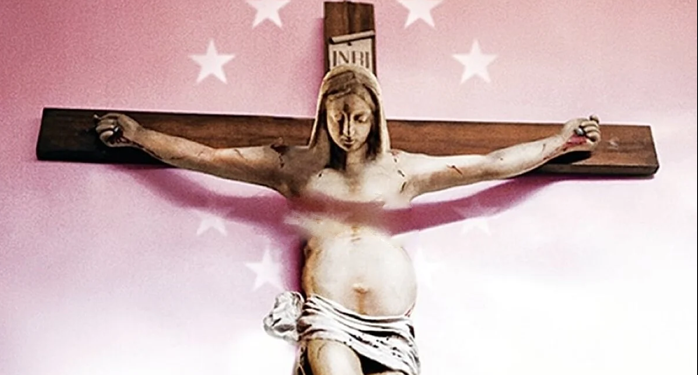 Ἀγανάκτηση γιὰ τὴν βλάσφημη ἀπεικόνιση γυναίκας ἐπὶ τοῦ Σταυροῦ τοῦ Χριστοῦ.