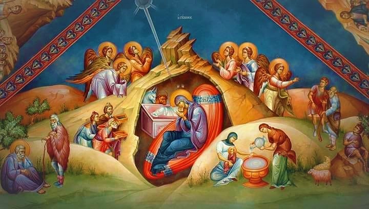 Πληρωμένοι οι πιστοί από άρρητη χαρά και ουράνια αγαλλίαση υμνούμε τον Μεγάλο «Ερχόμενο» (Πραξ.19,4) στον κόσμο, διότι  έχουμε την απόλυτη βεβαιότητα ότι δε βαδίζουμε τη στενή και δύσκολη ατραπό της επίγειας ζωής μας μόνοι μας, αλλά έχουμε συνοδοιπόρο μας τον Εμμανουήλ «ο εστι μεθερμηνευόμενον μεθ’ ημών ο Θεός» (Ματθ.1,24). Βιώνουμε οντολογικά την αδιάκοπη παρουσία του Κυρίου και εξ’ αιτίας αυτού αντλούμε θάρρος, διότι Αυτός «νενίκηκε τον κόσμον» (Ιωάν.16,33). Δεν είμαστε πια δούλοι της αμαρτίας, αλλά απελεύθεροι και ακόμη περισσότερο: υιοί και κληρονόμοι «του Θεού διά του Χριστού» (Γαλ.4,7). Γι’ αυτό καταρτίζουμε εγκάρδιο επινίκιο αίνο και ωδή ευχαριστίας στο Μεγάλο Λυτρωτή μας, κατά τη μεγάλη εορτή των Χριστουγέννων και μαζί με τον θεσπέσιο υμνογράφο της εορτής, υψώνουμε  «χείρας συν κρότοις εφυμνίοις, μόνον σέβοντα Χριστόν, ως ευεργέτην, εν τοις καθ’ ημάς συμπαθώς αφιγμένον» ( Κανών Ιαμβικός, 2ο τροπ. Δ΄ ωδής).