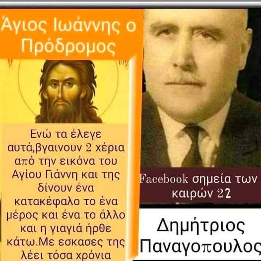 Με εσκασες της λέει τόσα χρόνια .Εμένα της λέει έχει ο Χριστός να συγχωρώ ,η τους παπάδες τους έχει να συγχωρεί ;Εγώ μια φορά στον Ιορδάνη , βαφτιζα όχι για σωτηρία ,αλλά τους ετοίμαζα για τον Χριστό.