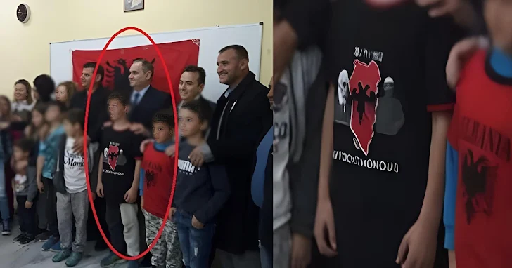 Εγκαίνια Αλβανικού σχολείου στην Κρήτη με χάρτη της «Μεγάλης Αλβανίας» στην μπλούζα μαθητή – ΦΩΤΟ