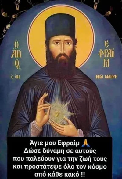 Ποιός ξέρει πόσοι πάσχοντες βρήκαν τή σωτηρία μέσω τών προσευχών σας; Βοήθεια μας, Άγιε μου Εφραίμ, βοήθησε τά βάσανα μας. Προσευχήσου Στόν Άγιο Θεό καί άν είναι χρήσιμο νά θεραπεύσεις μάλλον, κάνε το νά συμβεί στή δόξα Τού Θεού…