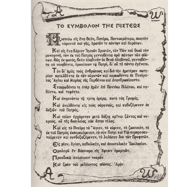 «…Τούτον τον κανόνα η Αγία αύτη Σύνοδος εξέδωκεν, ορίσασα, ότι ΔΕΝ ΕΙΝΑΙ ΣΥΓΚΕΧΩΡΗΜΕΝΟΝ ΕΙΣ ΚΑΝΕΝΑ να συνθέτη και να συγγράφη ή να προσφέρη εις τους προς την Ορθοδοξίαν επιστρέφοντας άλλην Πίστιν, ήγουν άλλο Σύμβολον Πίστεως,(1)έξω από το Σύμβολον της Πίστεως το ορισθέν από τους Αγίους Πατέρας τους συναχθέντας εν τη πόλει Νικαέων, δια φωτισμού του Αγίου Πνεύματος.
