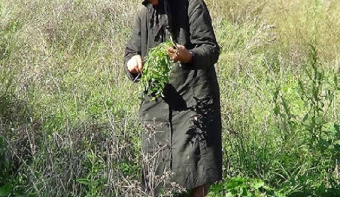 Στό χωριό ήταν και μιά γιαγιά πολύ φτωχή,πού δεν είχε τίποτα να δώσει για τον ναό. Πονούσε η ψυχή της γι’αυτό και καθώς περνούσαν τα ζώα πού κουβαλούσαν τις πέτρες,μάζευε χορταράκια καί τούς τα έριχνε να τα τρώνε να παίρνουν δυνάμεις.