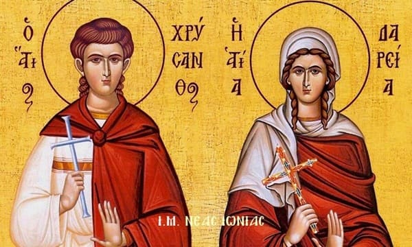 Στη χορεία των αγίων της Εκκλησίας μας υπάρχουν και πάμπολλα ανδρόγυνα, οι οποίοι αγίασαν μέσα στον ευλογημένο γάμο τους. Άλλωστε ο γάμος για την Εκκλησία μας είναι τρόπος ζωής και δρόμος σωτηρίας. Ένα από αυτά τα ευλογημένα και άγια ζευγάρια είναι οι άγιοι Χρύσανθος και Δαρεία, οι καλλίμαχοι Μάρτυρες της αρχαίας Εκκλησίας..