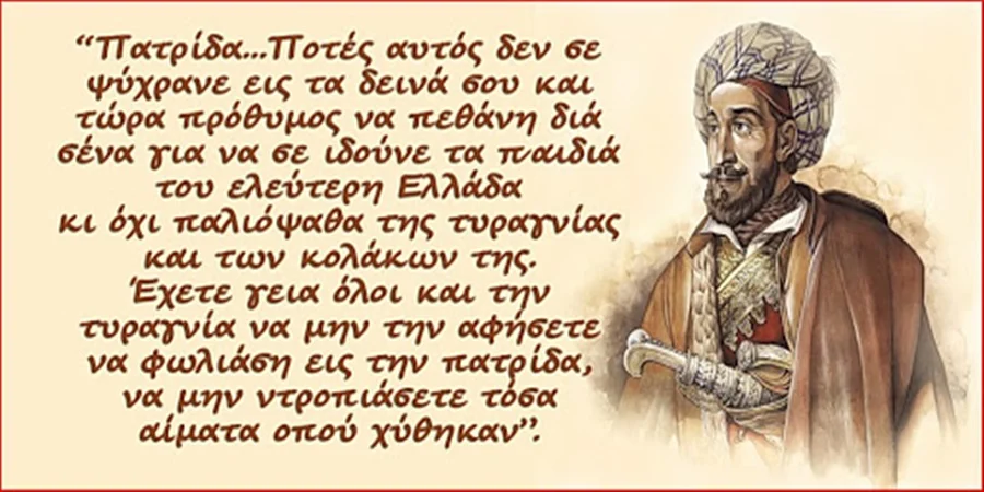«Τούτην τὴν πατρίδα την ἔχομεν ὅλοι μαζί, καὶ σοφοὶ καὶ ἀμαθεῖς καὶ πλούσιοι καὶ φτωχοὶ καὶ πολιτικοὶ καὶ στρατιωτικοὶ καὶ οἱ πλέον μικρότεροι ἄνθρωποι»