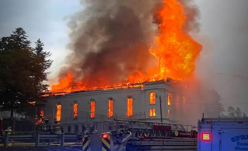 Τα πλάνα δείχνουν φλόγες και πυκνός μαύρος καπνός να καταστρέφουν την First Congregational Church στο Spencer της Μασαχουσέτης, περίπου 90 μίλια έξω από τη Βοστώνη. Στο βίντεο ακούγονται οι θεατές να ουρλιάζουν καθώς το κωδωνοστάσιο της προτεσταντικής εκκλησίας η οποία είχε κτιστεί το 1863 πέφτει, εκτοξεύοντας περισσότερη φωτιά και καπνό στον αέρα.