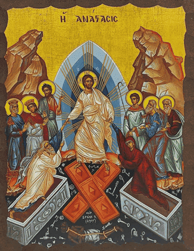 - Το Πάσχα ημών ο Αναστάς Κύριος εξελεύσεται την άπειρον απαγόμενος του Άδου αιχμαλωσίαν και, όχι την εξ Αιγύπτου οδοιπορίαν.