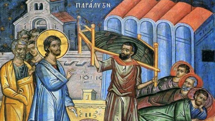 Η σημερινή Κυριακή, αγαπητοί μου αδελφοί, είναι η τέταρτη Κυριακή από του Πάσχα, η Κυριακή του Παραλύτου και το μεν Αποστολικό ανάγνωσμα, που ακούσαμε προηγουμένως είναι μια περικοπή από το 9ο κεφάλαιο των Πράξεων, το δε Ευαγγελικό μια περικοπή από το 5ο κεφάλαιο του κατά Ιωάννην Ευαγγελίου, στο οποίο ο Ευαγγελιστής μας περιγράφει το θαύμα της θεραπείας του Παραλύτου. Πρόκειται για ένα θαύμα, που έκανε ο Κύριος στην Ιερουσαλήμ, στην προβατική πύλη της Βηθεσδά, όπου υπήρχε κάποια μεγάλη δεξαμενή, γύρω από την οποία υπήρχαν πέντε θολωτά υπόστεγα. Σ’ αυτά βρίσκονταν ξαπλωμένοι ένα πλήθος αρρώστων, που περίμεναν εκεί καρτερικά την θεραπεία τους, η οποία γινόταν με ένα θαυμαστό τρόπο. Διότι όπως σημειώνει ο ευαγγελιστής, κάποιος άγγελος κατέβαινε στην κολυμβήθρα και τάραζε τα νερά της. Όποιος προλάβαινε να κατέβη πρώτος στην κολυμβήθρα, θεραπευόταν από οποιαδήποτε ασθένεια και αν έπασχε.