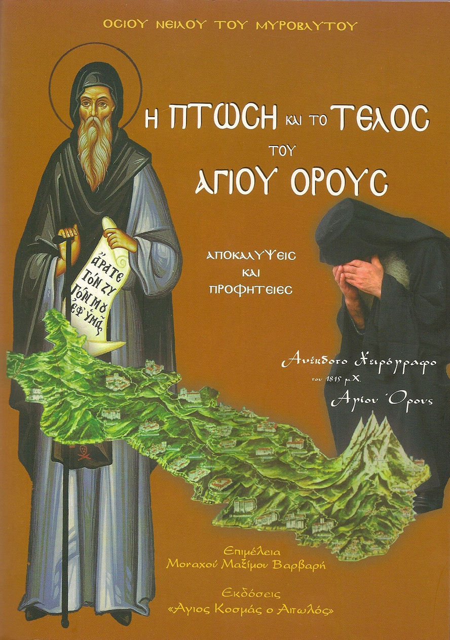 «… Το Ανέκδοτον αυτό Χειρόγραφον του Οσίου Νείλου, περιέχει  διδαχές, λόγους, προτροπές, προφητείες και αποκαλύψεις του Αγίου Νείλου του Αγιορείτου και Μυροβλύτου, σχετικά με  το Άγιον Όρος, τους Αγιορείτας Μοναχούς, αλλά και τους Μοναχούς και Κληρικούς γενικώτερα, την Αποστασία του κόσμου, τον ερχομόν του Αντιχρίστου, την έλευση της Δευτέρας Παρουσίας του Κυρίου μας και το Τέλος του ορατού κόσμου, τα οποία μάλιστα και προσδιορίζει ότι θα συμβούν στα μέσα του 8ου αιώνος.