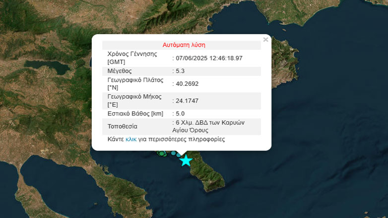 Ανησυχία έχει προκληθεί στους κατοίκους της Βόρειας Ελλάδας αλλά και στους σεισμολόγους, από την ισχυρή σεισμική δόνηση με μέγεθος 5,3 Ρίχτερ, που σημειώθηκε στις 15:46 το μεσημέρι του Σαββάτου στις Καρυές Χαλκιδικής.