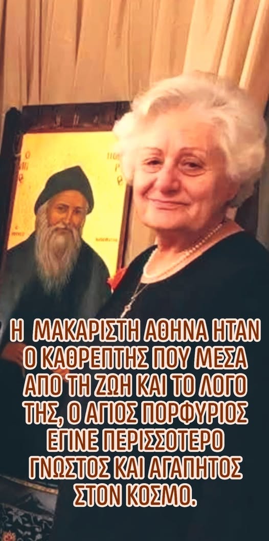 Η μακαριστή Αθηνά ήταν ο καθρέπτης που μέσα από τη ζωή και το λόγο της, ο Άγιος Πορφύριος έγινε περισσότερο γνωστός και αγαπητός στον κόσμο.