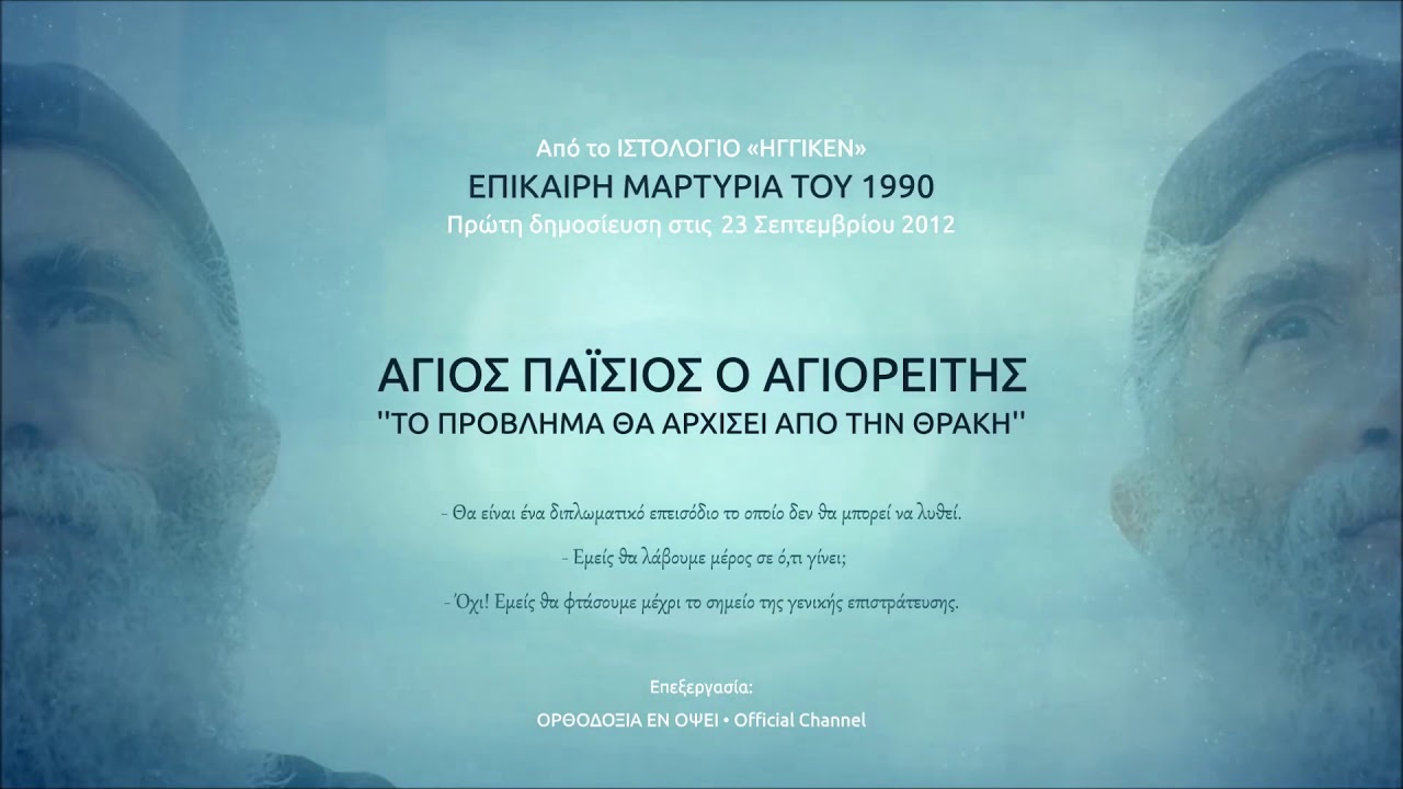 Άγιος Παΐσιος – Το πρόβλημα θ’ αρχίσει από την Θράκη… Θα’ ναι ένα διπλωματικό επεισόδιο…