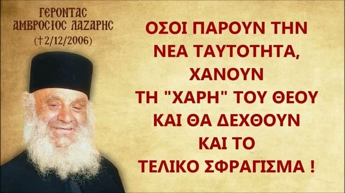 Ο Γέροντας Αμβρόσιος Λάζαρης μας δίνει ΜΙΑ ΦΟΒΕΡΗ ΑΠΑΝΤΗΣΗ στο θέμα, λέγοντάς μας στην ουσία οτι αν θα πάρουμε την νέα Ταυτότητα, θα χάσουμε την Θεία Χάρη και θα επιτρέψει ο Θεός να μας κυριεύσει ο σατανάς κι έτσι θα δεχθούμε και το Σφράγισμα χωρίς δυσκολία.