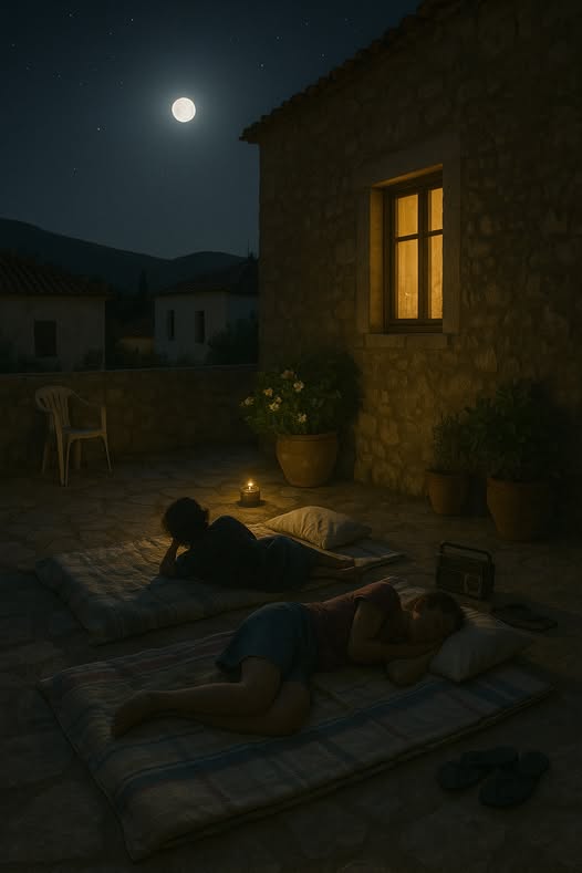 -Να … θα στρώσουμε στρωματσάδα εδώ χάμω και θα κοιμηθούμε όλοι μαζί. Εσείς θα πέσετε στις άκρες κι εμείς στη μέση.