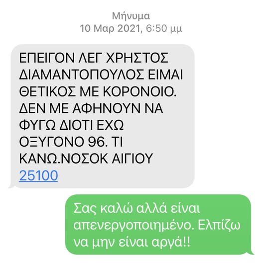 Ένας από αυτούς του είπε με απότομο ύφος ότι βγήκε θετικός και θα τον μετέφεραν στην κλινική Covid-19.