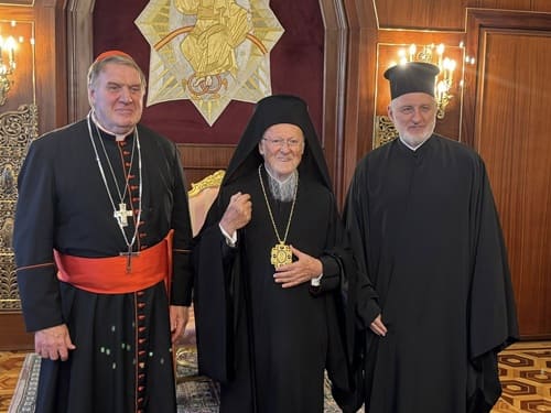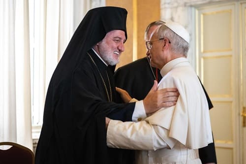 Μία ακόμη ραδιοφωνική παρουσία του Νεκτάριου Δαπέργολα χτες στον Focus FM με βασικό θέμα τα νέα κατορθώματα του (φερόμενου ως Ορθοδόξου αρχιεπισκόπου) Ελπιδοφόρου, που δεν προσκύνησε μόνο τον Πάπα στην Ρώμη, αλλά πήγε και στην Κωνσταντινούπολη παρέα με έναν παπικό ψευδαρχιεπίσκοπο από την Αμερική και τον έβαλε μάλιστα να απαγγείλει και το Σύμβολο της Πίστεως εν μέσω Θείας Λειτουργίας.