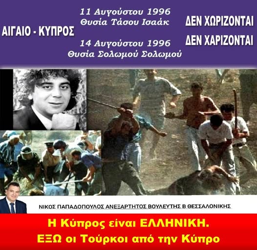 📅 11 Αυγούστου: Στη Δερύνεια, στην «πράσινη γραμμή», ο 24χρονος Τάσος, προσπαθώντας να βοηθήσει άλλον Ελληνοκύπριο, εγκλωβίζεται και λιντσάρεται από Γκρίζους Λύκους και την «αστυνομία» του ψευδοκράτους.