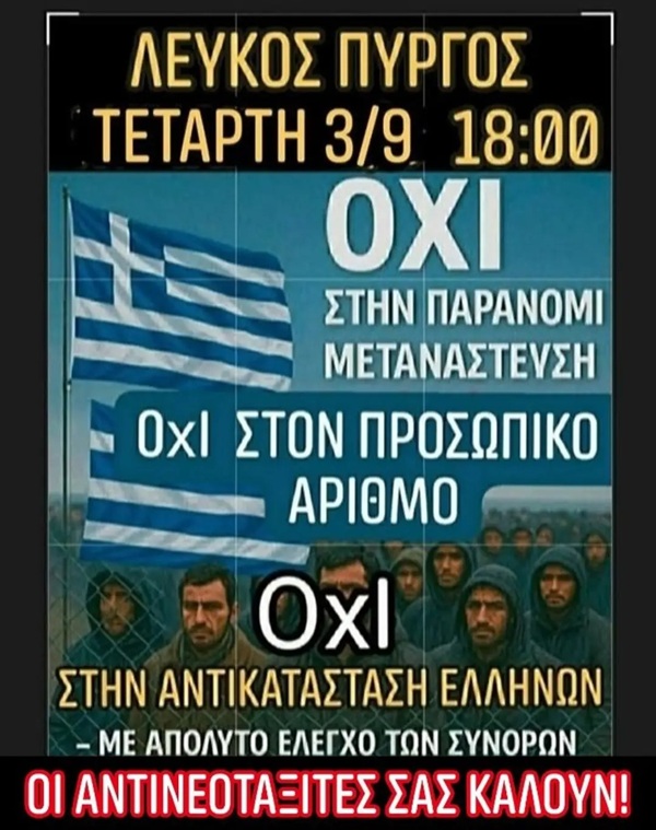 ΕΠΙΚΑΙΡΟΤΗΤΑ ΣΤΙΣ 05 ΣΕΠΤΕΜΒΡΙΟΥ ΘΕΛΟΥΝ ΝΑ ΜΑΣ ΔΩΣΟΥΝ ΤΟΝ ΠΡ6ΣΩΠΙΚ6 ΑΡΙΘΜ6! ΕΜΕΙΣ ΟΜΩΣ ΛΕΜΕ ΟΧΙ!!! Last updated: 16 Αυγούστου 2025 10:11 By mike 150 Views Share 0 Min Read SHARE ΣΤΙΣ 05 ΣΕΠΤΕΜΒΡΙΟΥ ΘΕΛΟΥΝ ΝΑ ΜΑΣ ΔΩΣΟΥΝ ΤΟΝ ΠΡ6ΣΩΠΙΚ6 ΑΡΙΘΜ6! ΕΜΕΙΣ ΟΜΩΣ ΛΕΜΕ ΟΧΙ!!! ΟΙ ΑΝΤΙΝΕΟΤΑΞΙΤΕΣ ΣΑΣ ΚΑΛΟΥΝ: ΤΗΝ ΤΕΤΑΡΤΗ, 03 ΣΕΠΤΕΜΒΡΙΟΥ, 2025 (03/09/2025) ΣΤΟΝ ΛΕΥΚΟ ΠΥΡΓΟ ΘΕΣΣΑΛΟΝΙΚΗΣ ΚΑΙ ΩΡΑ 18:00. add TAGGED:slide5 Share This Article Facebook Copy Link Previous Article Γερόντισσα Γαλακτία: Το όνομά Της, τα ’χει όλα μέσα! Next Article Η Παναγία στο Κοράνι: Γιατί οι μουσουλμάνοι τιμούν την Μητέρα του Χριστού Δεν υπάρχουν Σχόλια Αφήστε μια απάντηση Ακύρωση απάντησηςΓια να σχολιάσετε πρέπει να συνδεθείτε. FacebookLike Διαβάζονται Τώρα Κάποτε ένας φτωχός άνθρωπος ρώτησε τον γέροντα… Γιατί είμαι τόσο φτωχός; Το μπαχαρικό κάρυ σκοτώνει τα καρκινικά κύτταρα Νύχτα ήταν που έφυγε. Δεν άντεχε άλλο. Εκείνη νόμισε πως θα παντρεύονταν έναν άντρα να κάνει οικογένεια κι όχι να την δέρνει, να την διατάζει κι αυτή να υπακούει. Τότε ο Μιχαήλ (Αρχάγγελος) που θα είναι δίπλα στον Βασιλιά Ιωάννη, θα του πει.. «Από το “κατ’ εικόνα” στο “προϊόν με copyright”: Ο μετανθρωπισμός υπόσχεται αθανασία, αλλά πουλάει απόλυτη δουλεία στους όρους χρήσης» «Tίς είδε νεκρόν φυλαττόμενον; μάλλον δε τίς είδε νεκρόν πολεμούμενον; » Άγιε Λάζαρε – Ύμνος Τραγούδι
