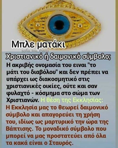 ΔΙΔΑΧΕΣ Το ματάκι δεν είναι Χριστιανικό σύμβολο. Last updated: 18 Αυγούστου 2025 10:25 By mike 78 Views Share 0 Min Read SHARE Ο Σταυρός είναι η προστασία των Χριστιανών. Ιερεας Γκελιας Αρσενιος add Share This Article Facebook Copy Link Previous Article ΝΙΚΟΛΑΟΣ ΠΑΠΑΔΟΠΟΥΛΟΣ : ΖΗΤΩ Η ΕΛΛΗΝΙΚΗ ΟΡΘΟΔΟΞΗ ΟΙΚΟΓΕΝΕΙΑ Next Article Η ΠΑΝΑΓΊΑ ΤΗΣ ΧΑΒΑΗΣ Αποσβολωμένοι δεκάδες πιστοί και ιερείς δεν πιστεύουν στα μάτια τους. Δεν υπάρχουν Σχόλια Αφήστε μια απάντηση Ακύρωση απάντησηςΓια να σχολιάσετε πρέπει να συνδεθείτε. FacebookLike Διαβάζονται Τώρα Το μπαχαρικό κάρυ σκοτώνει τα καρκινικά κύτταρα Νύχτα ήταν που έφυγε. Δεν άντεχε άλλο. Εκείνη νόμισε πως θα παντρεύονταν έναν άντρα να κάνει οικογένεια κι όχι να την δέρνει, να την διατάζει κι αυτή να υπακούει. Τότε ο Μιχαήλ (Αρχάγγελος) που θα είναι δίπλα στον Βασιλιά Ιωάννη, θα του πει.. «Από το “κατ’ εικόνα” στο “προϊόν με copyright”: Ο μετανθρωπισμός υπόσχεται αθανασία, αλλά πουλάει απόλυτη δουλεία στους όρους χρήσης» «Tίς είδε νεκρόν φυλαττόμενον; μάλλον δε τίς είδε νεκρόν πολεμούμενον; » Άγιε Λάζαρε – Ύμνος Τραγούδι