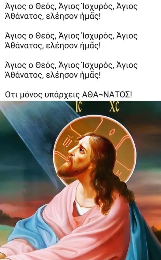 Εξηγόρασας ημάς εκ της κατάρας του νόμου τω Σταυρώ προσηλωθείς και τη λόγχη κεντηθείς την αθανασίαν επήγασας ημίν Σωτήρ ημών Δόξα Σοι.