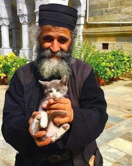 Το γατάκι νιώθει ασφάλεια στα χεράκια του γέροντα Φιλήμων… Και ο Γέροντας Φιλήμων νιώθει ασφάλεια στα χέρια Του Θεού…