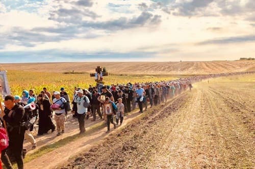 Συγκεκριμένα στη Λαύρα του Ποτσάεφ, οι προσκυνητές έγιναν δεκτοί από εκατοντάδες πιστούς, οι οποίοι γονάτισαν μπροστά στις εικόνες και τους σταυρούς που μετέφεραν οι συμμετέχοντες στη λιτανεία.
