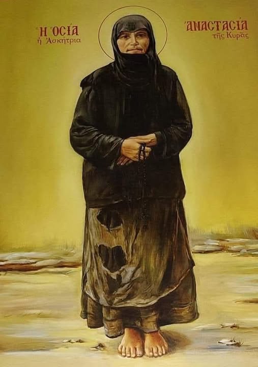 Η μακαρία Γερόντισσα Αναστασία ζούσε σε απόλυτη πτωχεία. Ως νεαρά ήταν εύμορφος και όλοι την επαινούσαν γι’ αυτό. Για αυτό έβαλε κανόνα στον εαυτό της να μένη πάντοτε ρακένδυτος και ατημέλητος….