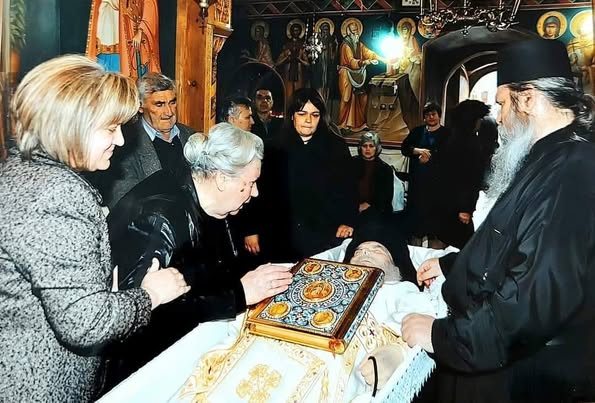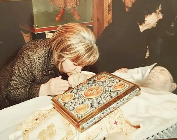 Αγαπημένο πνευματικό παιδί του Οσίου Γέροντος Κυρίλλου, μαθαίνοντας την Κοίμηση του , έσπευσε στο Μοναστήρι, προκειμένου να αποχαιρετήσει τον πνευματικό της πατέρα.