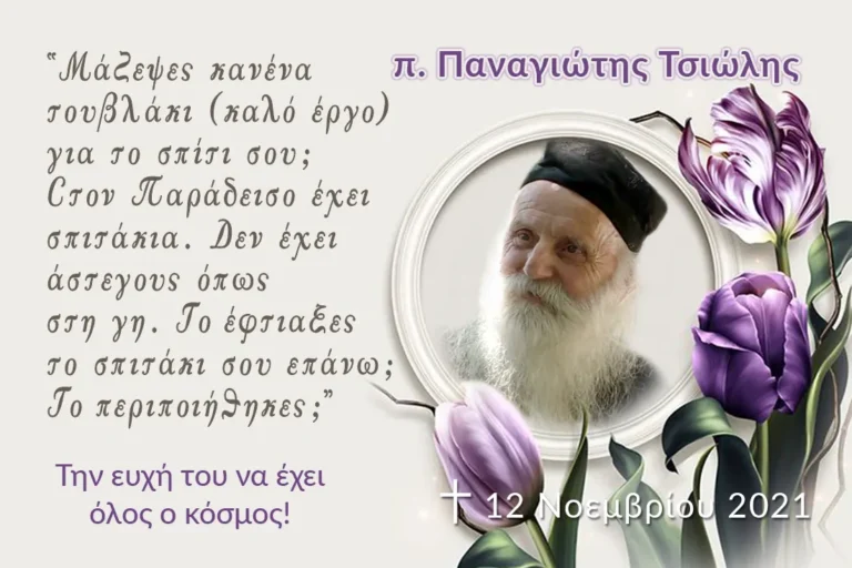 (Σὰν σήμερα 12 Νοεμβρίου 2021 κοιμήθηκε ὁ γέροντας τῶν Ἀγράφων πατὴρ Παναγιώτης Τσιώλης.