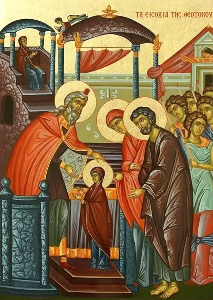Ὁ ἅγιος Γρηγόριος ὁ Παλαμᾶς, ὁ ὁποῖος ἐκτὸς τῶν ἄλλων εἶναι καὶ θεομητορικὸς θεολόγος, στὴ γνωστὴ Ὁμιλία του εἰς τὰ Εἰσόδια τῆς Θεοτόκου ἀναφέρει, ὅτι ἡ Παναγία μας εἰσελθοῦσα στὰ Ἅγια τῶν Ἁγίων πρώτη αὐτὴ στὸν κόσμο ἐγκαινίασε τὴν ὁδὸ τῆς νήψεως, τῆς ἀναβάσεως τοῦ νοῦ στὸν Θεὸ καὶ τῆς ἑνώσεως τοῦ νοῦ τοῦ ἀνθρώπου μὲ τὸν Θεό, τὴν ἡσυχαστικὴ δηλαδὴ ὁδὸ θεώσεως τοῦ ἀνθρώπου. Ἔτσι, γιὰ ὅσους ποθοῦν τὴ μυστικὴ καὶ ἡσυχαστικὴ ἄνοδο πρὸς τὸν Θεὸ καὶ τὴ μυστικὴ θεωρία καὶ γνώση τοῦ Θεοῦ, ἡ Παναγία μας εἶναι τὸ πρότυπο καὶ ἡ ὁδός. Δὲν εἶναι μόνον ὁδὸς καὶ πρότυπο γιὰ αὐτοὺς ποὺ ζοῦν στὸν κόσμο, μὲ παρθενία καὶ σεμνὸ γάμο, γιὰ τὶς μητέρες, ἀλλὰ εἶναι πρότυπο καὶ γιὰ τοὺς ἱερῶς ἡσυχάζοντες.